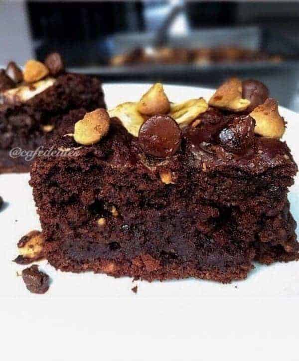 The perfect addition to fluffy and sweet Banana Bread would have to be peanut butter and chocolate chips. Theeee best. With a chocolate peanut butter topping, you’ll be reaching for more than three slices. And you can. Because this has half the fat than regular cakes…