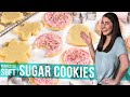 I used my Sugar Cookie Recipe as well as cutting the cookies amongst a scalloped border 3-inch cutter.